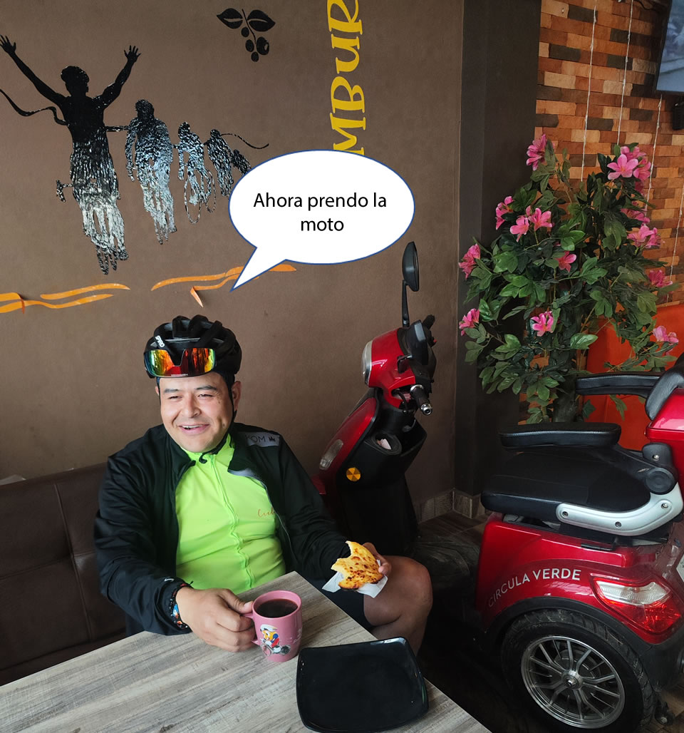 Hoy no tuvimos moto escolta, el acompañante asignado se varó en Cajicá, debido a un pinchazo. Pero si tuvimos un excelente conductor escolta:
