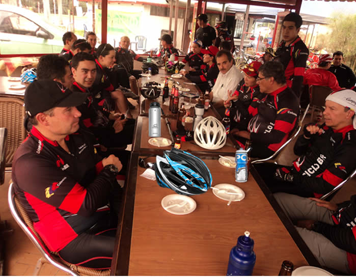 Teníamos el temor de que hoy amaneciera lloviendo, pero vea Ud. el hermoso día que nos regalaron los Dioses del ciclismo. Ese cielo despejado que vimos por nuestras ventanas fue el gran motivador, logró que treinta y un pedalistas () se levantaran muy animados para participar activamente en la etapa programada para hoy. Rápidamente el restaurante los Kioskos se fue llenando de ciclistas con camisetas rojo-negro, se veían todos entusiasmados.