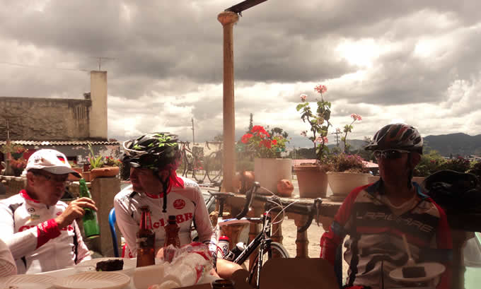Todos llegamos a la cumbre, esperen, uno, dos, tres, ventidos, venticuatro… oigan, me falta uno ¿quien será?. Alguien comenta que uno de nuestros apreciados colegas estaba a la orilla e la carretera con un pie levantado, gritando “Un calambre!!!.. Pobrecito, no mencionaremos su nombre porque bastante tiene con los ataques crónicos de calambres, pero nuevamente le recomendamos . Son buenísimas.