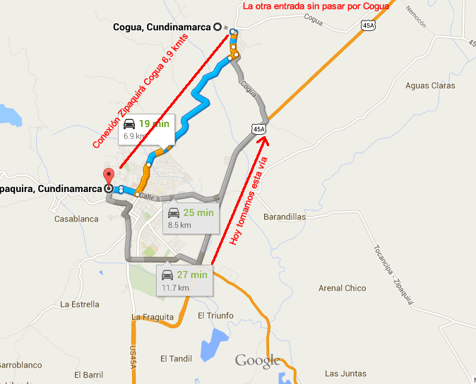 Alejo y Marco nos comentan que es mejor llegar a Zipaquirá, entrar y buscar la salida a Cogua, así llegaríamos directo sin tomar esos cinco incómodos kmts. Hice la tarea y en efecto hay una vía que nos lleva a Cogua. La tendremos en cuenta para la próxima.