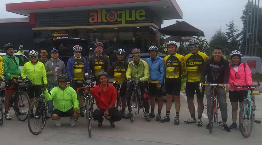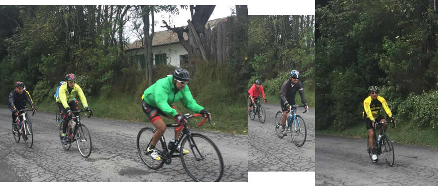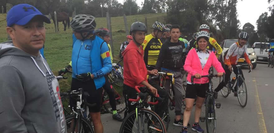 En Subachoque nos aprovisionamos de energía en la panadería, allí nos encontramos a Mauricio Peña, había salido de Siberia subió al Vino y llegó a Subachoque por el Rosal. Guillermo prometió que nos iríamos en grupito y ya se podrán imaginar. Marcolino, Alberto Otálora y Ricardo iban adelante, así que nos tocó darle duro para alcanzarlos. Mauricio Peña quien luce delgado pasó a comandar el lote durante varios kmts a paso fuerte.