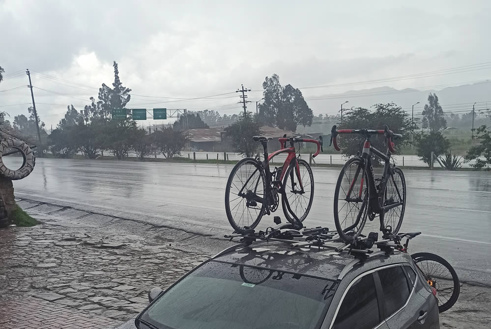 El horizonte se veía oscuro por las nubes negras, pensamos que más adelante estaba lloviendo, pero a la altura del cruce hacia Sopó repentinamente el cielo se despejó, salió el sol y nos alegró el día. El convoy marchó raudo pero a velocidad moderada para que nadie perdiera el paso; en Tocancipá el sol salió a hacer alguna diligencia y nos abandonó por unos minutos, pero ya estábamos seguros de que la lluvia hoy no había sido invitada por estos parajes, lo que había era optimismo..