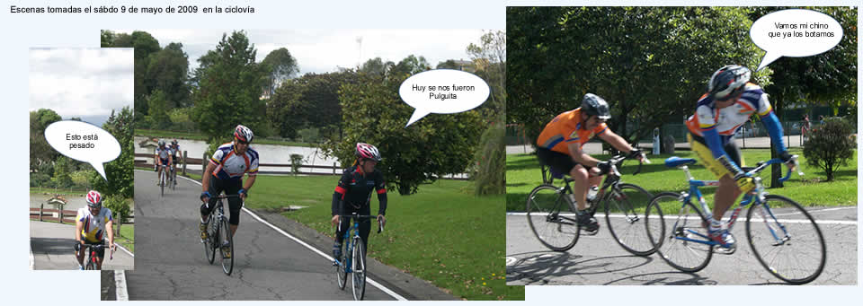 Solo Alejandro tuvo arrestos para cogerle la rueda a Augusto. Atrás quedaron Pulga, Alfredo Dimian, Jacinto un tanto aburridos pues no había nada que hacer. Al final el profe manifestó que salió duro para ayudarle a Pulga, en efecto le ayudó a aterrizarlo pues en la cafetería lo vimos cabizbajo.