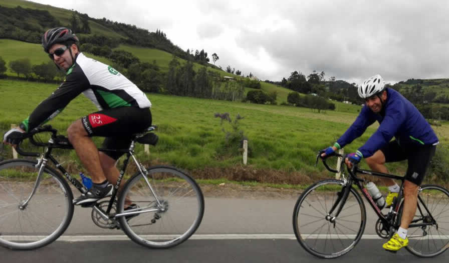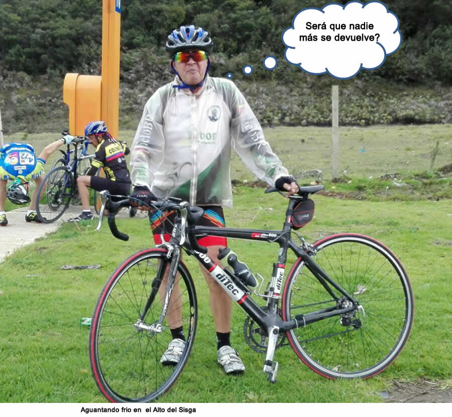 Después de enterarnos de los pormenores de la etapa del Giro, y de degustar un chocorramo con Gatorade, nos dispusimos a devolvernos a nuestro punto de partida. El paso fue moderado hasta la subida del Sisga, donde se fraccionó el lote, quedaron atrás Orlando, Pulga y Reinaldo. Nuevamente el lote se reagrupó en el peaje el Roble, por problemas técnico-mecánicos Rei tuvo que parar antes del peaje. Jorge y su señora lo esperaron para ponerle el carro adelante, en verdad quedó muy agradecido, pero la próxima vez ojalá que trate de bajarle de los cuarenta kmts, después de los kilómetros que llevábamos encima es bastante difícil. Finalmente Reinaldo conectó con Camilo y Jenny quienes se habían quedado rezagados y a pocos metros antes de Briceño con Orlando Márquez.