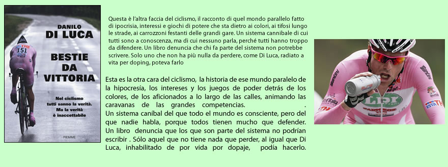 En su libro autobiográfico Di Luca, hace bastantes aportes al tema del doping, pero solo devela verdades que todos sabían. De todas sus frases, me quedo con esta, creo que es la más honesta: