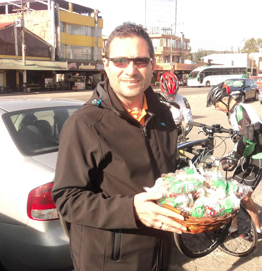 El turno de conductor elegido le correspondió a Jorge Buitrago, junto con su señora Adriana María Triana llegaron muy temprano con una canasta cargada de deliciosas bolsitas energéticas, que contenían galletas, panelita y maní entre otras delicias. Muchas gracias por la gran labor en este recorrido.