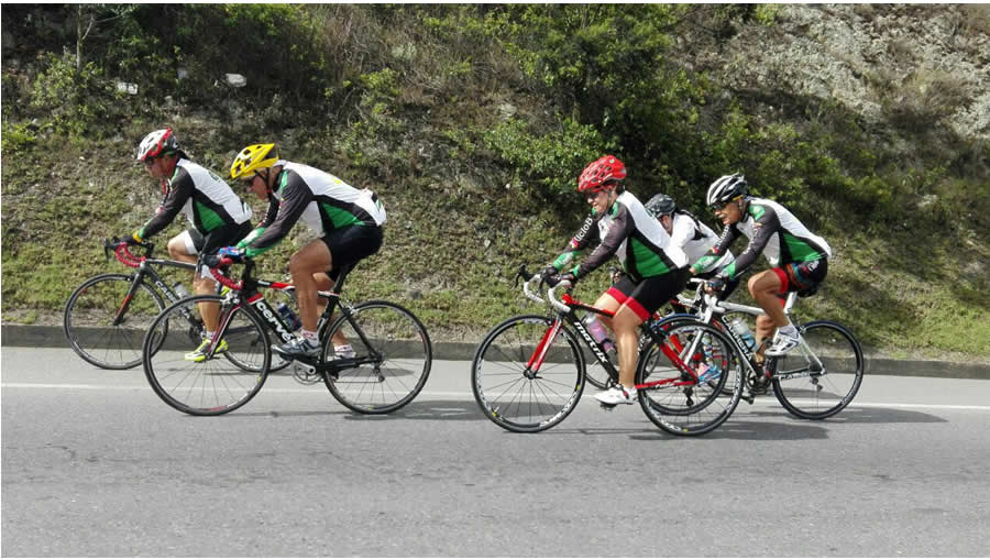 En este punto la nubosidad comenzó a hacerse más espesa, sin embargo el clima estaba perfecto para pedalear y la lluvia nunca nos acompañó durante el recorrido. Iniciamos el ascenso y los grupos se fueron seleccionando, adelante iba William jalando el grupo compuesto por el Chinazo (aún dolido por la ausencia de los gregarios de su escuadra), Reinaldo, Alberto, Geofre y Ricardo, bien de cerca venía otro grupo compuesto por Camilo, Jenny y los Molano.