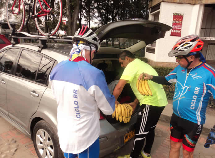 Allí llegó Pulga el conductor elegido de hoy, con su carro cargado de bananos, bocadillos, pony maltas y quesitos, se perdió una soberana etapa, mejor dicho se salvó. Excelente acompañamiento de Pulga, estuvo todo el trayecto “en la jugada”, asistió a Manuel quien pinchó, animó a los colegas, tomó las fotos y repartió refrigerios en plena subida. Muchas gracias Pulga.