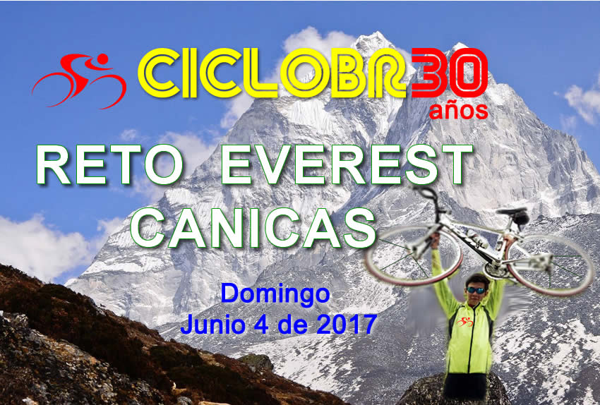 para celebrar los 30 años de CicloBR, vamos a medírnosle a un EVERESTING CHALLENGE, o RETO EVEREST. Hemos escogido la cuesta al alto de Canicas, por cuanto justo vamos a estar por allí frente a la escuela en esa vía donde alquilamos una finca para el almuerzo, así matamos dos pájaros de una pedrada.