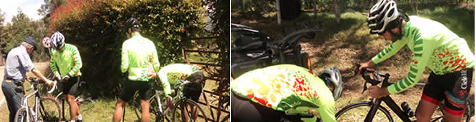 Alvarito Cuervo cumplió a las mil maravillas con su turno como conductor elegido, lo acompañó su esposa Lilia. Ayer trabajaron en casa para prepararle a cada pedalista una una bolsita energética que contenía, juguito, herpo, chocolatina y galletas. Además de su excelente labor como reportero gráfico, Alvarito trabajó duro en la asistencia mecánica pues hoy tuvimos dos pinchados. Buen detalle de la familia Cuervo, muchas gracias.
