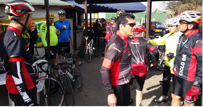 Para comenzar el puente armamos una etapita corta, Siberia- Subachoque - Canicas- Siberia, de apenas 76 kilómetricos. Pensamos que serían pocos los asistentes, pero al final llegamos 16 desocupados, perdón, ciclistas (), incluido Mr. Solomon Abel un gringo amigo de Reinaldo.