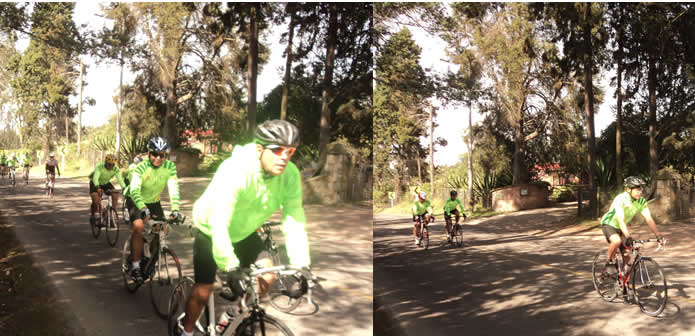 Alejandro los vio pero se devolvió pues había olvidado su casco. Una vez superado el ligero olvido decidió acelerar para llegarle a sus compañeros, pasó el peaje y llegó a Puente Piedra estaba muy molesto; le parecía el colmo que hubiéramos vuelto a pasadas épocas donde la salida era un “sálvese quien pueda”. Mientras le daba con todo iba pensando en hacernos el reclamo una vez conectara, no hay derecho. Pero llegó a Subachoque y nada, entonces ya entró en duda, le marcó a Alvarito Cuervo quien le confirmó que estábamos llegando a Tenjo, hay jue..ta alcanzó a musitar, entonces nada que hacer, a completar la tarea así fuera al revés. Decidió aprovechar y como su “personal trainer” lo tiene trabajando fuercita subió a Canicas con el plato grande.