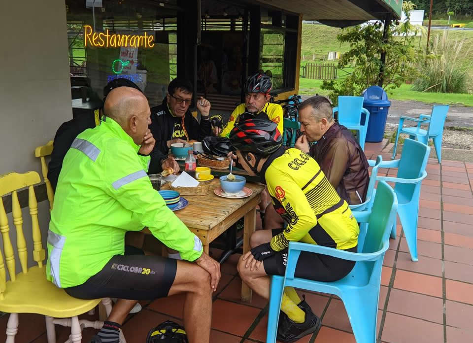 Jorge, Fernando, Javier, Wilfran, Héctor, Pablo, y Luis Hebert bajaron hasta el restaurante la mona (tres kmts antes del Chuscal).