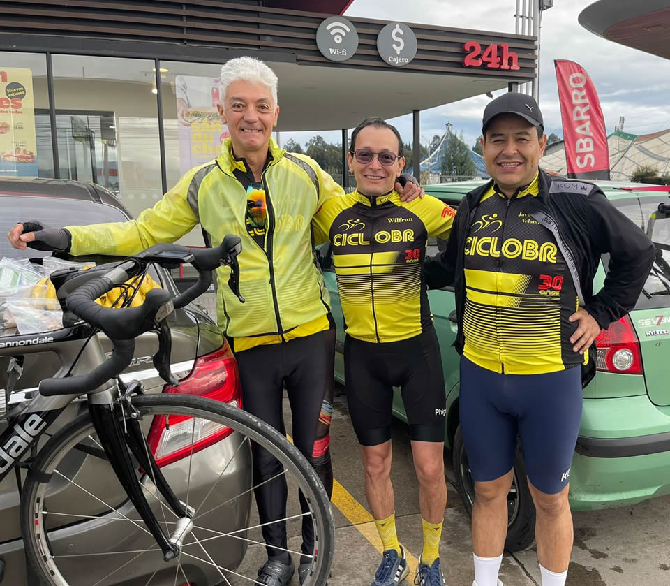 A su primera convocatoria acudió una docena de pedalistas, cuyos nombres aparecen en la foto de portada. Pachito no quedó en la instantánea pues pasó derecho para iniciar la subida al Vino antes que todos y aprovechar la ventajita y subir tranquilito, con su amigo tinieblo.