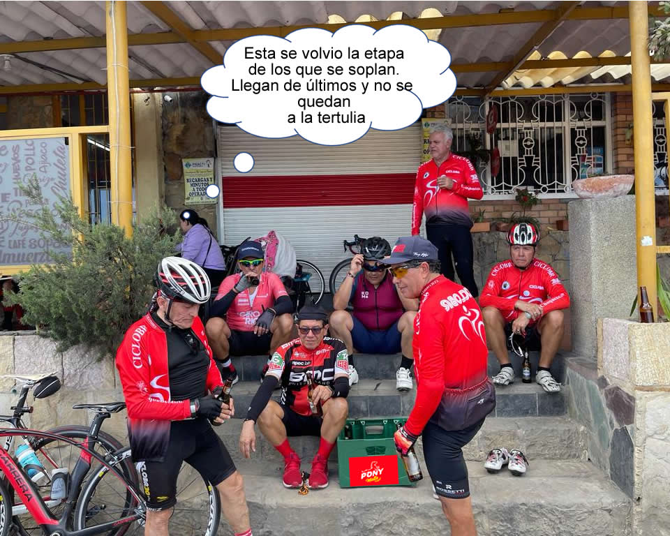 Y en el regreso como siempre…sálvese quien pueda. Tomamos la delantera: Wilfran Diaz, Nobile González, Luis Eduardo Pulgarin, Juan y Pachito, pronto fuimos sobrepasados por algunos de ellos. De acuerdo con los relatos en la tertulia pude establecer el siguiente orden de llegada Orlando Carrillo, Marco el amigo de Fernando Flores, Eduardo Bedoya, Javier Velandia, Fernando Flores, Guillermo Duran, Luis Eduardo Pulgarin, Javier Fernandez, Nobile Gonzalez, Wilfran Diaz, Jorge Bernal, Juan y Alberto Rivera.