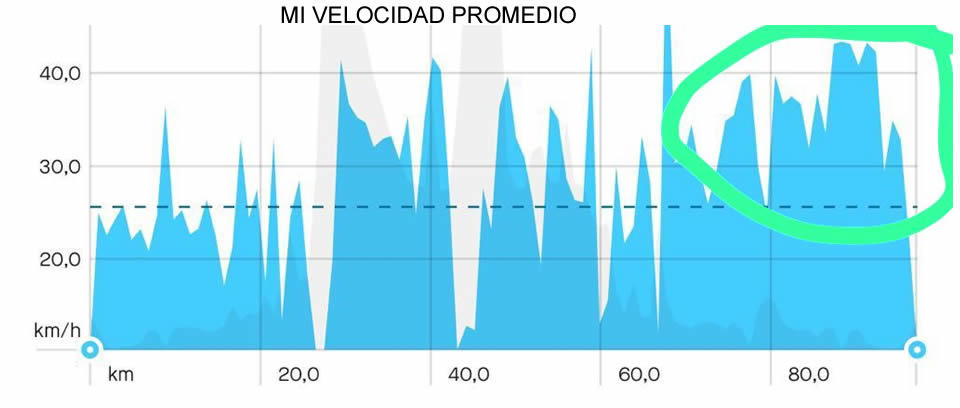 La gráfica azul que aparece al comienzo de esta crónica, es mi velocidad promedio, ¿cómo me viste?