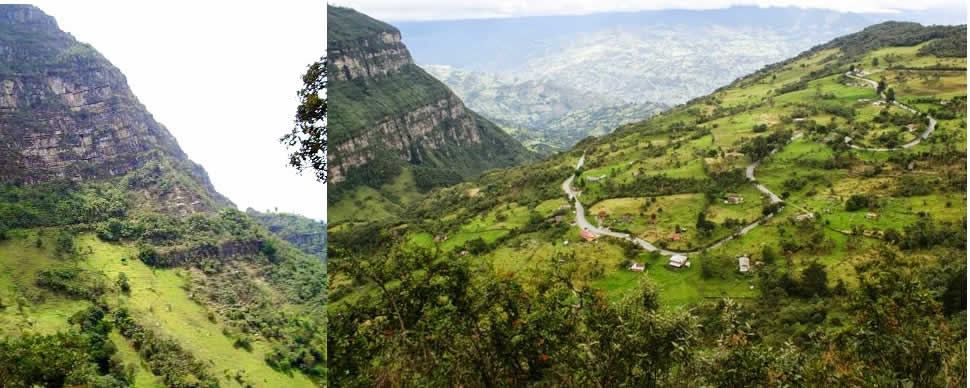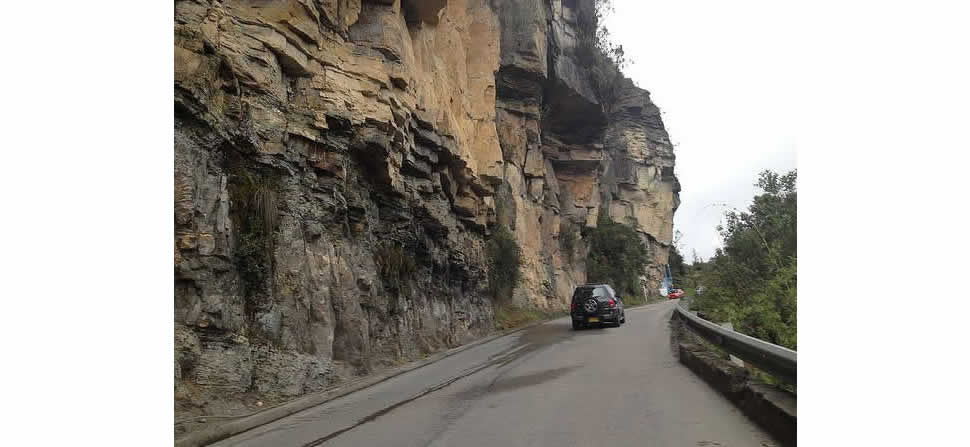 Justo cuando mis piernas tienden a desfallecer por la pendiente continua, llegamos al Km 18, una zona donde podemos apreciar a la izquierda enormes paredes de roca que parecen talladas por algún artista, se nota que los ingenieros le robaron un corto espacio a la peña para colgar la carretera, a la derecha un profundo abismo. Decidí parar y bajarme de la bici, para tomar aire, me quedaba un bocadillo y algo de líquido.