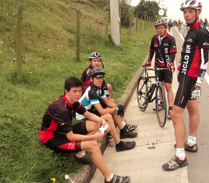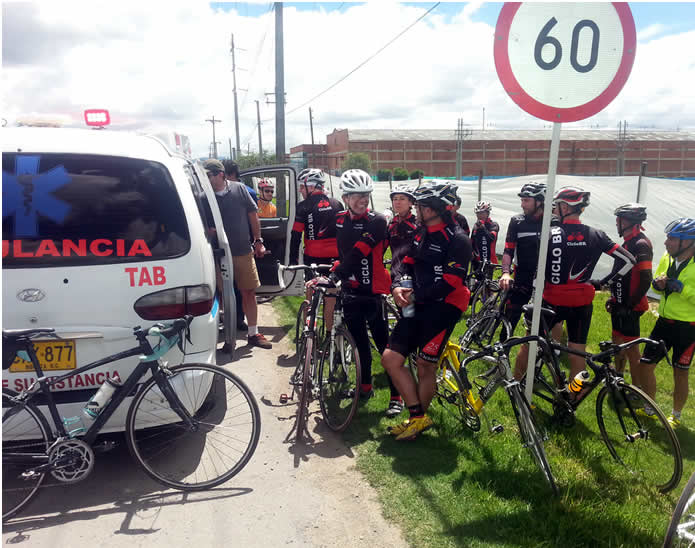 Al regreso Miguel, Eduardo y Guillermo se habían pegado a un lote de ciclistas de otros grupos que venían a buen paso. A menos de dos kmts de Siberia, uno de esos pedalistas en un descuido le pegó a la rueda de Eduardo y se cayó, llevándose con él a Miguel Granados quien sufrió una “contusión costal”, debido precisamente al costalazo. Afortunadamente en pocos minutos apareció la ambulancia del peaje que llamó un patrullero y allí le hicieron una valoración preliminar, parece que afortunadamente no fue nada grave.