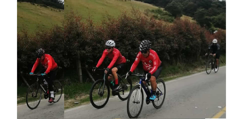 Oscar de tercero, Marcolino de cuarto, Héctor y cerrando Pachito, luego los pasantes, ciclistas fuera de serie, Wilfran y Duberney pendientes en todo momento de sus alumnos.