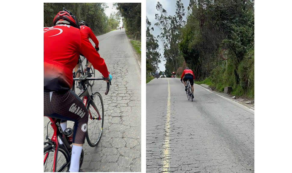 Hasta pasar El Rosal el grupo marchaba compacto, de ahí en adelante las cosas van cambiando minuto a minuto, los pasantes Wilfran y Duberney se encargan de sus alumnos Héctor y Marcolino los cuales acatan disciplinadamente las instrucciones correspondientes en medio de uno que otro empujuncito en los repechos duros para que no perdieran el impulso, ni la rueda.