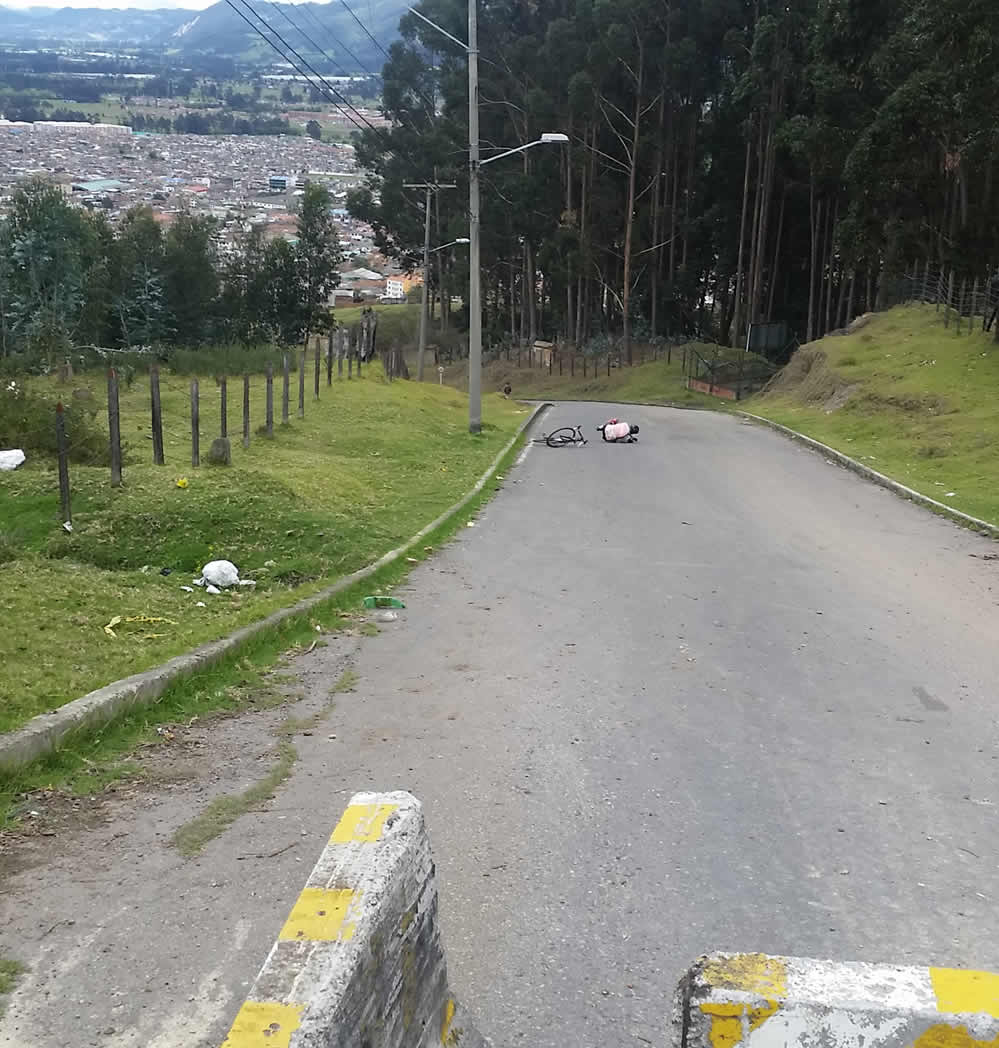 Cuando sus piernas estaban a punto de desobedecerle finalmente avistó el empalme con la vía principal; por ese atajo había salido un par de kmts adelante pero a qué costo; allí paró, y luego de un merecido descanso tomó la vía al Alto del Zipa, cuyas curvas le parecieron demasiado suaves comparadas con lo que acababa de finalizar, pronto avistó a Nobile a Jorge y a Pulga quienes cerraban el lote.