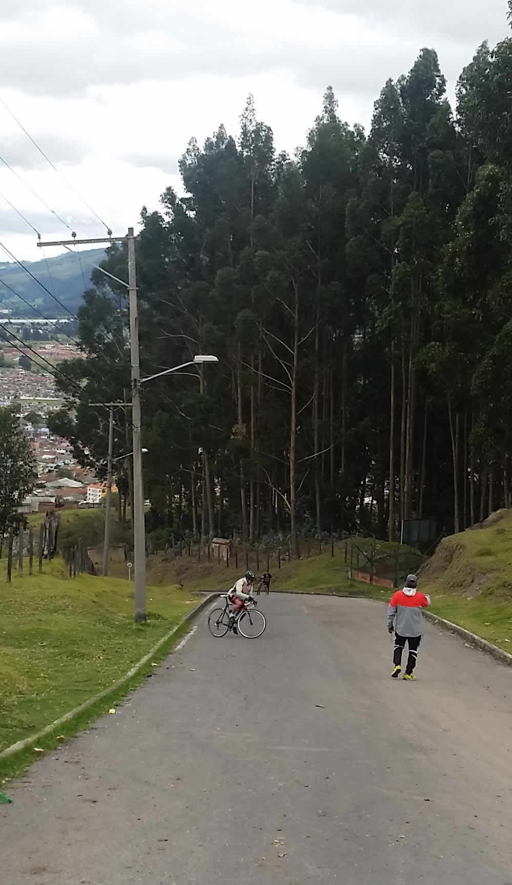 Justo ayer yo les había enviado por Whatsapp la descripción que hacen del alto del Zipa los amigos de Altimetrías de Colombia, allí señalaban: "Este alto tiene una variante durísima, con un kilómetro inicial brutal al 13.5% de pendiente media a la salida de Zipaquirá por la Calle 4, y rampas con picos de hasta el 20%.". Imagínense, mientras nosotros avanzábamos por curvas con pendientes duras del 6.5% y 7% el pobre Javi se reventaba subiendo esa pared.