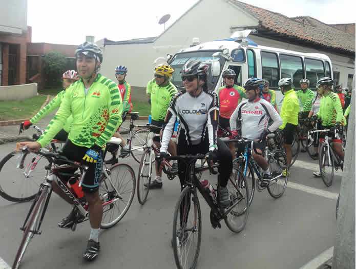 La via a Zipaquirá pronto se vio engalanada con una larga hilera conformada por 24 ciclistas con camisetas blancas, rojas y verdes, esos pedalistas iban en pos de la montaña y dispuestos a dejar la piel en la vía para representar a su equipo.