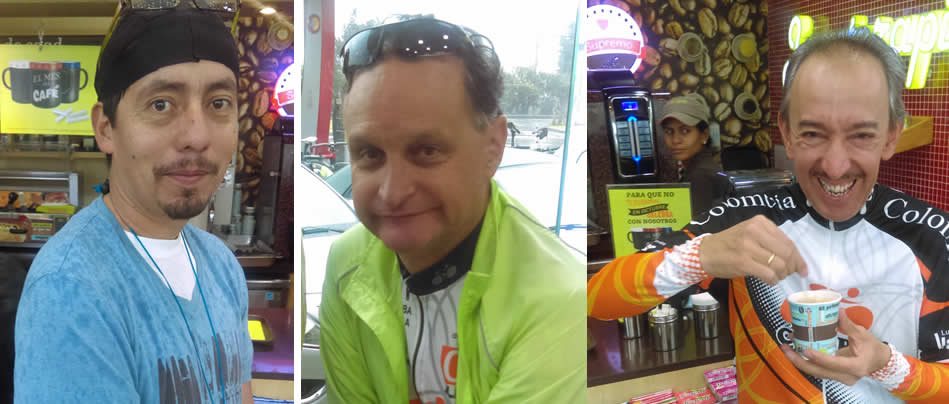 A las 7:10 a.m. Ya éramos cuatro pedalistas con el médico Andrés Córdoba quien reside en la Florida y llegó esta semana de visita para acompañarnos. Pacho llamó avisando que venía en la Boyacá para que lo esperaran, mientras A. Rivera escribió que estaba cerca.