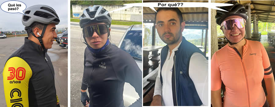 Don Héctor prestando su lubricante para las cadenas de las bicis, que Orlando Carrillo se lo desperdicia engrasando la cadena de la bici de Rivera; Wilfran “encaramado” en su flamante escalera para poder bajar las ciclas del soporte del techo; el perro que se traviesa en toda la entrada de Altoque; el ombligo de Gabriel Avendaño que se soma por entre la corredera de su camiseta, culpa de la talla a la que seguramente con unas cuantas subidas a La Línea y otro tanto al Alto de Letras.