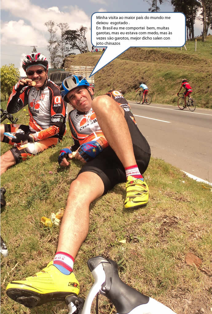En el Alto del Vino hicimos una parada para descanso, allí vimos muy cómodo descansando al chinazo Eduardo, él es de los que odian las paradas pero hoy no andaba bien dado que está recién llegado de Brasil y la disfrutó al máximo, no tenía el más mínimo afán.