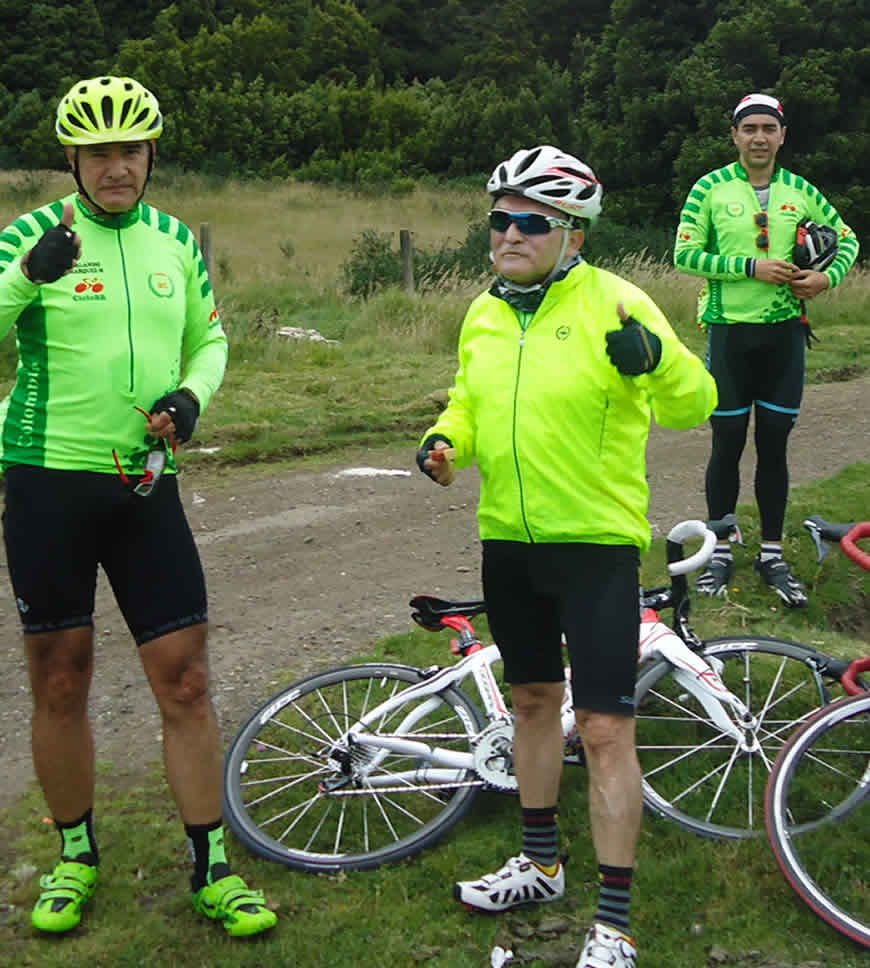 Partimos rumbo a Sesquilé y Sisga bajo un cielo completamente azul en un esplendoroso día. Pasamos Hato Grande, les puedo asegurar, que la velocidad promedio no superaba los 28 o 30 kmts, vi que Alberto incluso bostezaba, nadie parecía interesado en jalar el lote. Entonces en unos segundos todo cambió, la velocidad pasó de los 35 k/hora, de repente todos querían llegar a la cabeza del lote y jalar, esto parecía una prueba de relevos. Definitivamente algo extraño ocurría adelante, así que yo, tradicional habitante de la retaguardia del lote decidí, bajar un cambio y acelerar para investigar porqué aceleró ese grupito de once Verdillos quienes unos pocos minutos antes marchaban a un ritmo aburrido, ahora todos sonreían. Ameritaba investigar la causa del cambio.