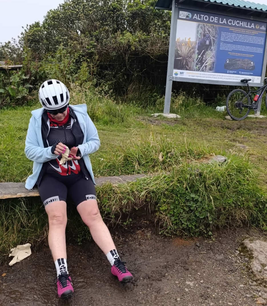 Nobile, recién venía de una incapacidad por una gripa, sin entrenar había subido a Rosas el pasado domingo y hoy se le medía a La Cuchilla, sin haber salido un solo día en la semana, pero iba acompañada de su amigo el coraje que la caracteriza, a veces se sentía desfallecer, pero nunca le dijo a Pulga pare que me devuelvo, tenía su meta clara: la cima de ese puerto que ya varias veces había logrado coronar.