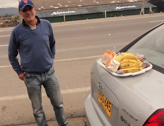 Muy temprano llegó Hermes Alvarado, para cumplir con su honrosa misión de conductor elegido, preparó una bandeja con bananos, galletas y herpos para sus amigos, cargó en su vehículo las ruedas de repuesto, el inflador y el botiquín. Para Hermes nuestro saludo de agradecimiento en nombre de todos los ciclistos y ciclistas, por ese gran detalle.