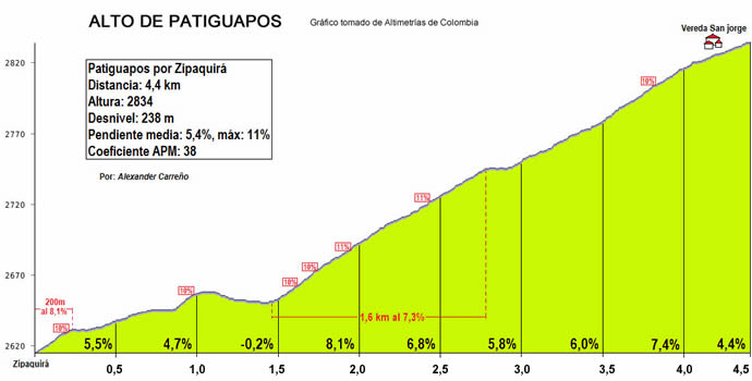 Felicitaciones por sus exitosas salidas dominicales y sus respectivos reportes. Solo queriamos matizar que la reseña del alto de Patiguapos, con su altimetría y fotos, es obra de nuestro gran colaborador Alexander Carreño. Cordiales saludos,