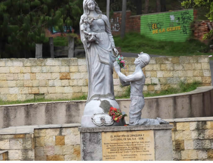 Es un monumento a la virgen patrona de los mineros de sal y de Zipaquirá, la Morenita de Guasá, o Virgen del Rosario de Guasá, a cuyos pies está de rodillas un minero implorándole protección, fue esculpido por el maestro .