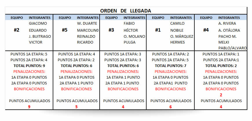 Teniendo en cuenta las reglas de juego establecidas por el Director General de la Carrera, el Chinazo, en el siguiente cuadro mostramos un resumen de los resultados globales.