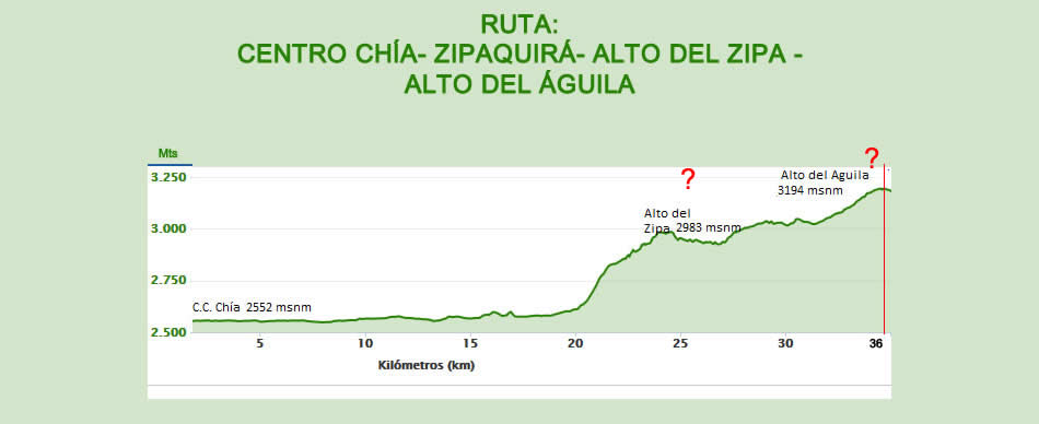 Pues mire que yo le creo a nuestros buenos amigos de Altimetrías de Colombia , a quienes consultamos con frecuencia, ellos denominan el primer puerto montañoso Ell Zipa y al segundo El Águila, así que seguiremos utilizando esos nombres y en ese orden hasta que nos demuestren lo contrario, al fin de cuentas lo importante es que hoy el Puerto del Águila fue hollado por 15 de nuestros pedalistas y el Zipa por 21.