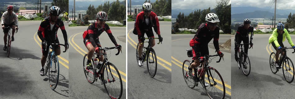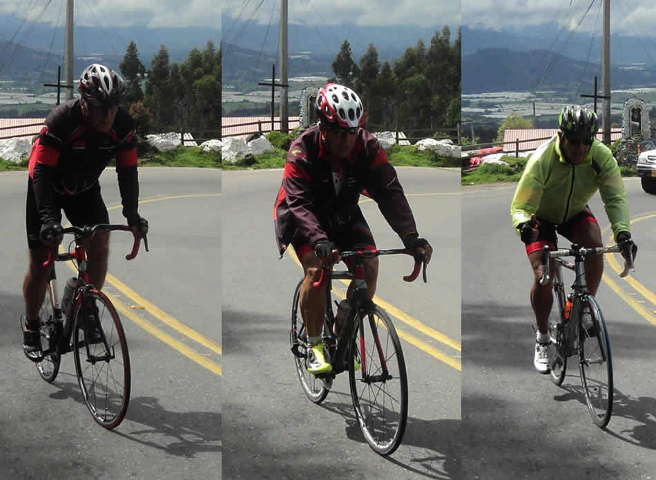 “Hablando de boyacenses, Javier se distrajo y pasando Zipaquirá perdió el rumbo del grupo. Como preguntando se llega a Roma acudió a un Zipaquireño, quien le indicó el camino, le dijo: "Si ve esa lomita allá, pues "poray" es el camino al Alto del Zipa, eso sí es empinadita mijo". Javi, uno de los más duros escaladores del grupo vio esa tremenda subida, ajustó su piñonería se paró en pedales y empezó a subir en Zig Zag, realmente era muy dura, pero iba pensando, si la subieron, Nobile, Gabriel, O. Márquez es que en algún lado se aplana. Cuando sus piernas estaban a punto de desobedecerle finalmente avistó el empalme con la vía principal; por ese atajo había salido un par de kmts adelante pero a qué costo; allí paró, y luego de un merecido descanso tomó la vía al Alto del Zipa, cuyas curvas le parecieron demasiado suaves comparadas con lo que acababa de finalizar, pronto avistó a Nobile a Jorge y a Pulga quienes cerraban el lote.