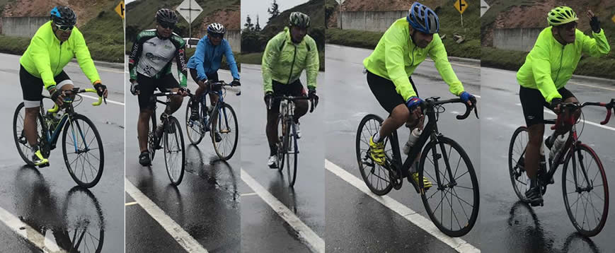 Pasando Tocancipá, soltaron a Pablito y a Giaco, yo seguía atrás muy cerca,y pese a que mi velocímetro oscilaba entre 38 y 41 kmt/hora no podía conectar, adelante veía al grupo de Pulga y unos 20 metros de ellos Pablito y Giaco andaban en las mismas. En el último repecho Rei se entregó, ya no le quedaban reservas. Atrás habían quedado solos Fabio, Alberto y Mauricio Peña.