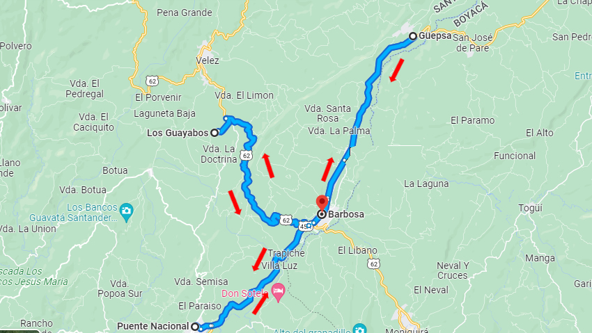 Recorreremos 17,5 kmts para ir de Barbosa a Vélez y otro tanto de regreso. La idea es aprovechar para ir al hospital de Vélez y visitar a William.
