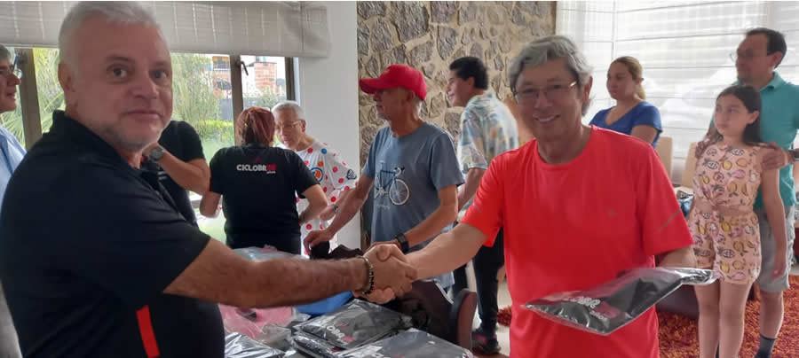 Al terminar los anfitriones y organizadores del ciclo paseo nos informaron que tenían una sorpresa para nosotros, habían mandado a fabricar camisetas para los ciclistas, gorras para las dama y botones recordatorios de nuestra primera visita a Barbosa, un bonito detalle que no olvidaremos.