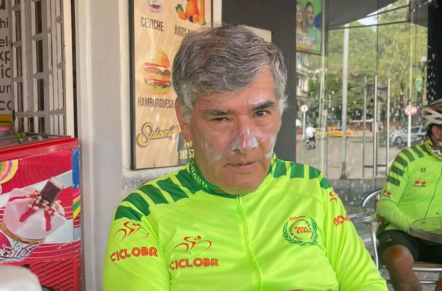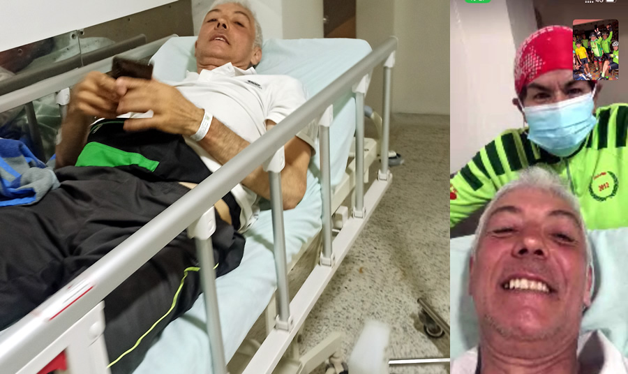 Qué diferencia hacer esos siete kmts, se me hizo más corto. Luego viene un tramo de descenso y un falso plano que persiste y se trata de empinar más a la llegada a Vélez, allí subimos hasta el Hospital de Vélez y paramos al frente en una cafetería, para que quienes quisieran ingresaran a visitar a William, la primera que entró, porque solo podíamos de a uno, fue Nobile, hizo una video conferencia.