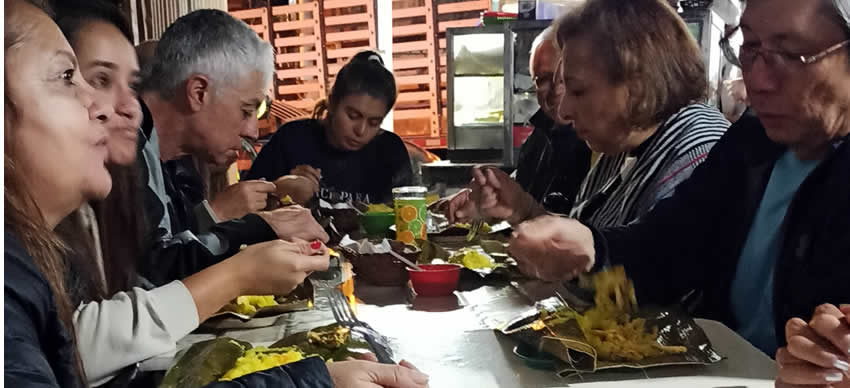 Orlando Carrillo nos sorprendió con una cena en un sitio típico, se trataba de las famosas hayacas santandereanas de arroz, primas hermanas de la familia de los tamales pero de forma rectangular y plana, deliciosas y recomendables. Yo repetí, creo que me comí la que le correspondía a Javier.