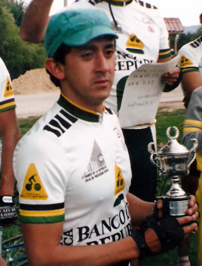 Empecé a trabajar con el Banco de la República en marzo de 1984 y me dediqué a buscar a los ciclistas de amarillo, un equipo del Banco de la República, que ya había tenido la oportunidad de ver en carretera, cuando acompañaba a Jaime Enrique, pero no fue fácil, eran como de otra élite, bastante creiditos, picaditos diría yo. No fue fácil contactarlos y entonces ya resignado, continué entrenando, a veces solo a ratos con mi compadre, pues el hombre cuando encontraba el día gris o frio, me dejaba metido.