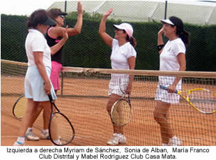 A las semifinales de dobles pasaron la pareja de Damas del Club Distrital y la pareja de Damas Choquenzá, conformada por nuestras compañeras: Sonia de Alban y Miryam de Sánchez quienes ganaron y pasaron a la final.