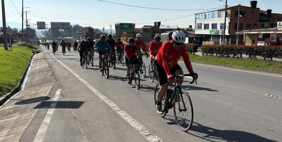 Entre mordiscos incompletos y caras largas, planeamos el regreso. Pablo arrancó primero, como si tuviera un segundo puerto invisible. Tenía compromiso familiar y desapareció del radar. A su rueda Héctor, Alberto, Pulga, Eduard Daza y Javive, quien venía desde Chía en bicicleta y debía guardar algo para el retorno. Detrás, los más entrenados: Guillermo, Lucero, Óscar, Willi, Germando y Jesús, marcando ritmo sólido.