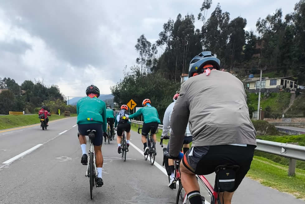 Reagrupación en Gachancipá. El grupo de cola alcanzó a Alberto y compañía. Se armó tren organizado rumbo a la Sabana a promedio sostenido de 35 km/h. Relevos medidos, disciplina colectiva y cero ataques innecesarios. Trabajo en equipo ejemplar.