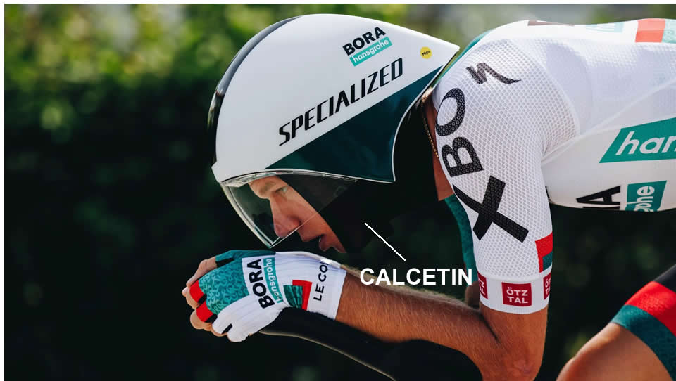 “La clave aerodinámica, consiste en no dejar que pase aire generador de turbulencias que se cuele por el plano que forman la cabeza, los hombros y los brazos del ciclista, que lleva la barbilla entre los codos y solo puede ver a través de los brazos. Los nuevos cascos, aparte de una superficie frontal inclinada y afilada, cubren la anchura de los hombros, creando, si el corredor es capaz de mantener, una superficie compacta y reducida impenetrable para el aire, que se desvía por los lados sin provocar diferencias de presión ni turbulencias frenadoras”.