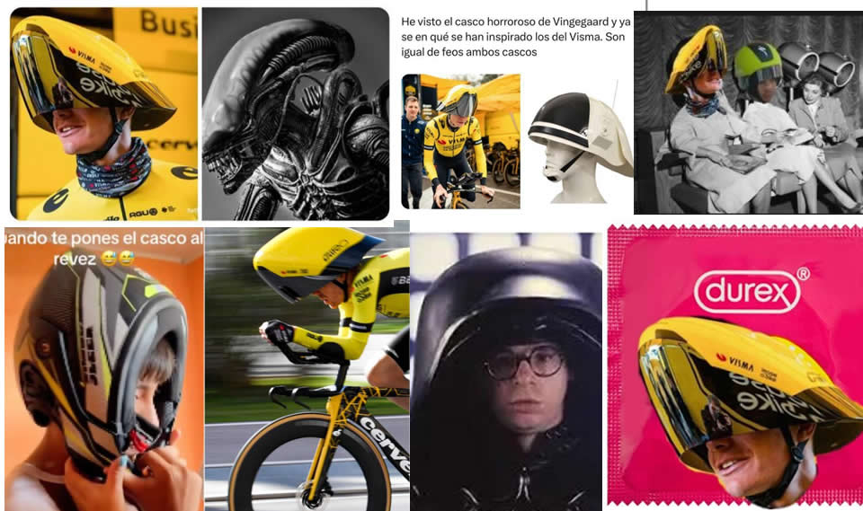 Vingegaar y el Visma con el casco platón no ganaron ninguna prueba, pero si se ganaron muchos memes :