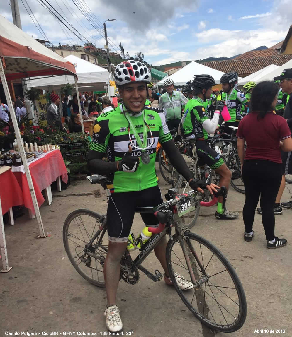 El ganador de la GFNY dice Fabio que hizo los 138 kmts 3 horas y 47 minutos, Camilo hizo el recorrido en 4 horas 23, TIEMPAZO!! (fruto del esfuerzo y de una extensa preparación previa). Giaco gastó 5: horas, Fabio y Eduardo 5:43 (Chinazo 130 kmts), y Laura 6:45.